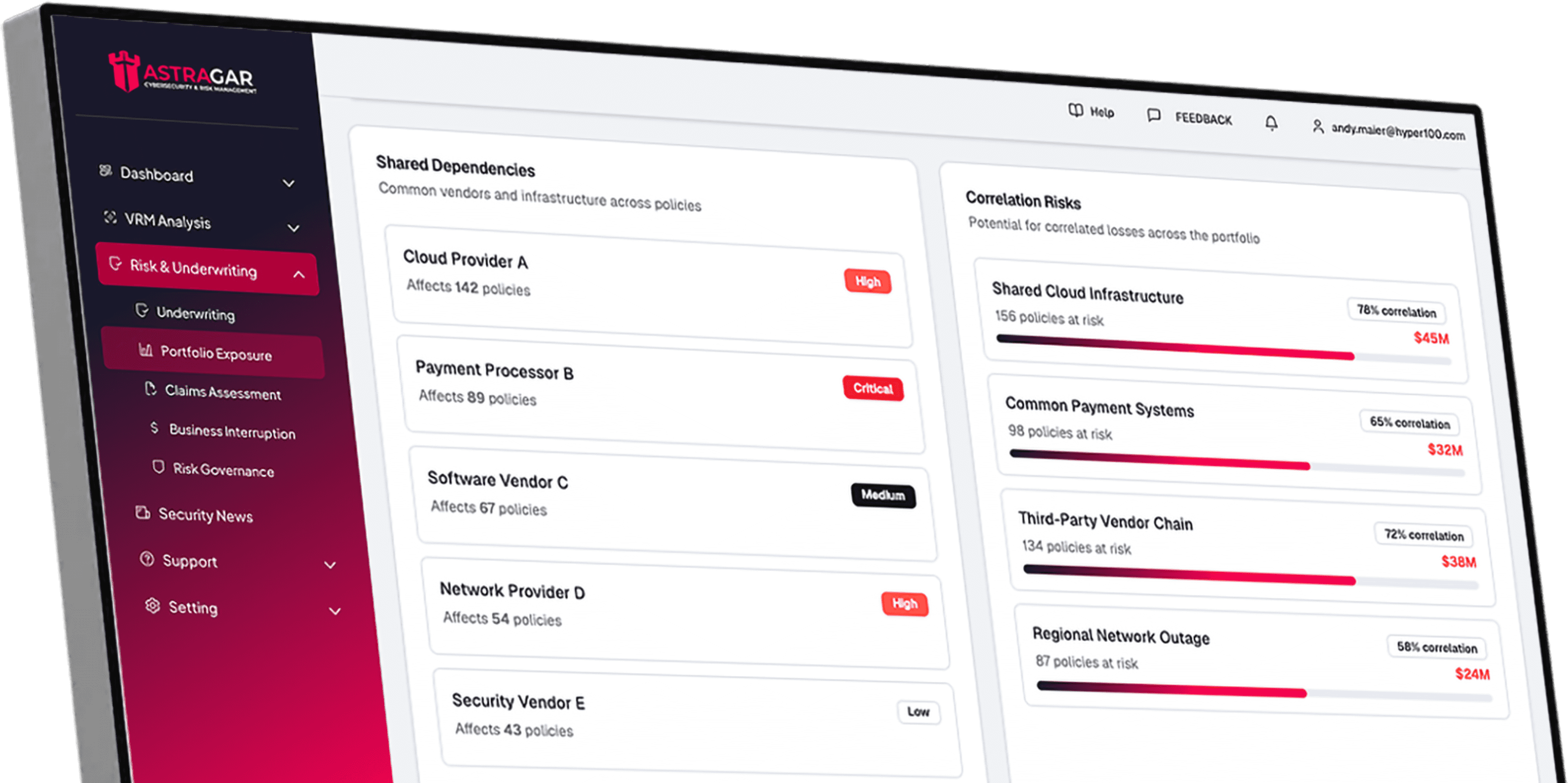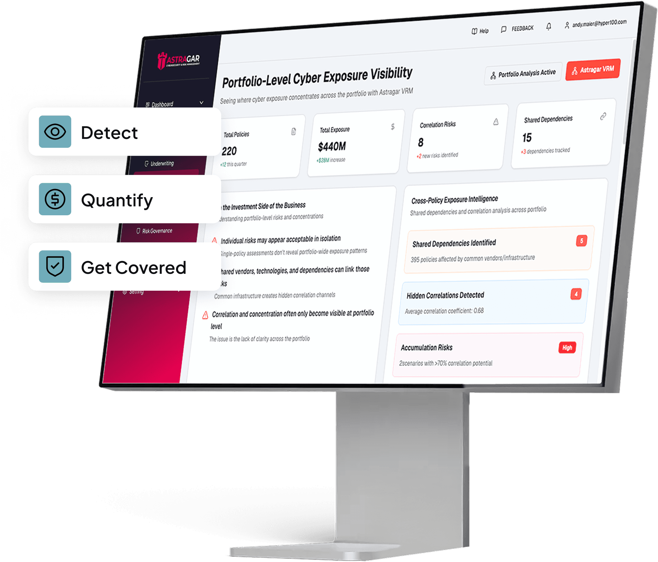 Astragar identifies your vulnerabilities, quantifies financial impact, and connects you to the right coverage—all in one platform.